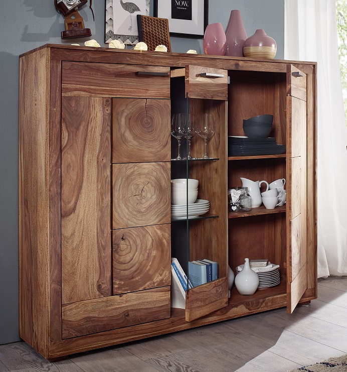 Wer sich für Massivholzmöbel aus Sheesham-Holz und Palisander entscheidet, der bekommt langlebige, robuste und ausdrucksstarke Möbelstücke mit einer einzigartigen natürlichen Farbe und Maserung. Weil das Holz insbesondere vom Farbton her sehr facettenreich ist, lässt es sich auch in den vielfältigsten Einrichtungsstilen finden.